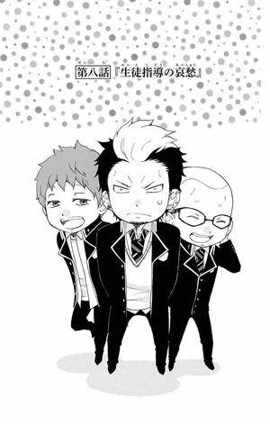 Using his book, Ten Tips to Make Students Open their Hearts, Yukio attempts to connect with Ryuji to no avail when Rin Okumura suddenly storms in. Demanding that Ryuji tells him what is wrong, Rin slaps him, causing Ryuji to cry out in pain. Taking a hold of Ryuji's jaw, Rin notices the redness behind his molars and comments that his wisdom teeth must be coming through. Realizing that he hadn't been neglecting his health, Ryuji is relieved and realizing that Ryuji was not acting out, Yukio excuses him.